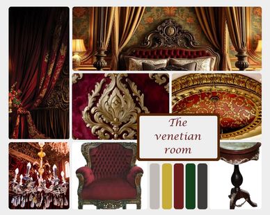 The room will be furnished with authentic exquisite 18th-century Italian antiques, including a magnificent antique walnut armoire offering ample space for flowing party gowns or treasured garments. Every detail, from the polished chestnut wood to the luxurious textiles, is designed to transport guests to a bygone era of sophistication and romance.